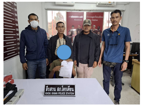 สถานที่เกิดเหตุ หน้าขนำไม่มีเลขที่ ม.7 ต.โคกเคียน อ.เมืองนราธิวาส จว.นราธิวาส ได้นำผู้ต้องหาส่ง พงส.สภ.โคกเคียน เพื่อดำเนินการตามกฎหมายต่อไป