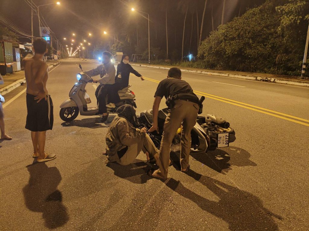 ร.ต.ต.จรูญ จันทโฆษรอง สวป.สภ.โคกเคียนพร้อม ชป.พนาสณฑ์ ช่วยเหลือเหตุ รถจักรยานยนต์ล้มเอง