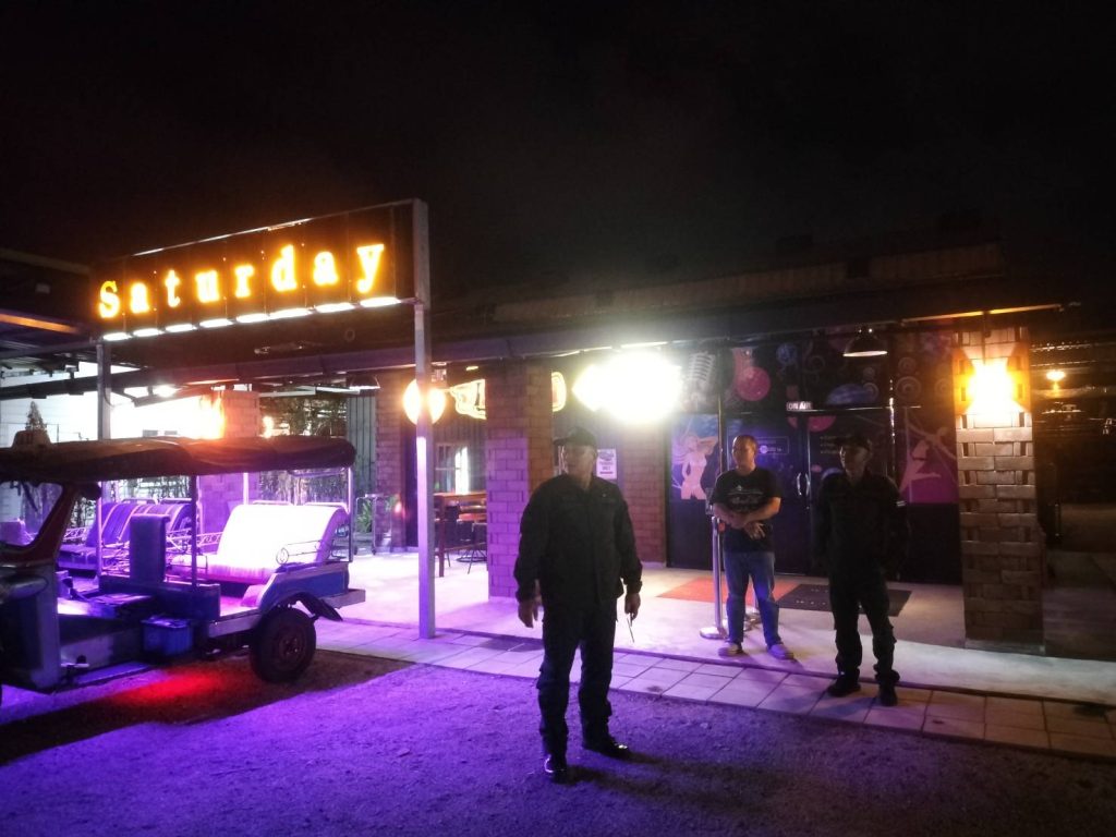 ว.4 ตรวจสอบสถานบันเทิง ร้านเสาคู่ ตาม ว.0 ของโคกเคียน1 พบว่าไม่มีการเเสดงดนตรี มีเเต่คนมากินอาหารเเละอาหารตามสั่ง จำนวน 2 โต๊ะ เจ้าของร้านได้เเจ้งว่าร้านปิดไม่เกิน 24:00 น.