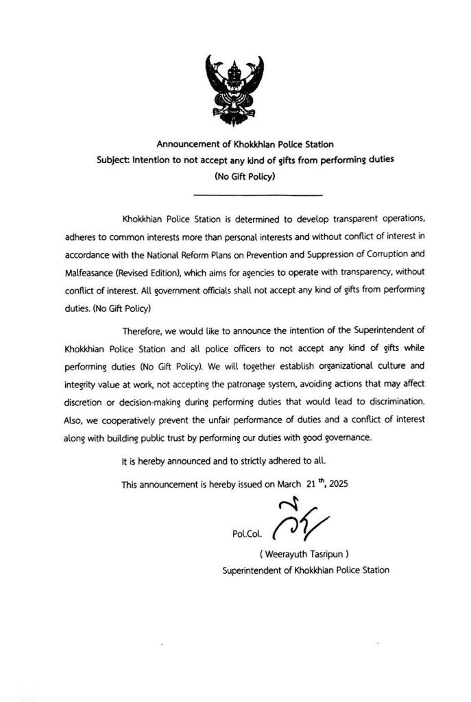 18 ประกาศนโยบายต่อต้านการรับสินบน (Anti-Bribery Policy) และนโยบายไม่รับของขวัญและของกำนัลทุกชนิด (No Gift Policy) จากการปฏิบัติหน้าที่ 18.ฉบับภาษาอังกฤษ Anti-Bribery Policyดาวน์โหลด 18.ฉบับภาษาอังกฤษ Anti-Bribery Policyดาวน์โหลด word 18.ฉบับภาษาไทยดาวน์โหลด แสดงภาพการเผยเเพร่ ณ จุดบริการ และจุดประชาสัมพันธ์ที่เห็นได้ชัดเจน
