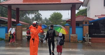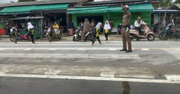ร.ต.อ.เรวัฒน์ คงชู รอง.สวป.สภ.โคกเคียน ปฏิบัติหน้าที่หัวหน้างานจราจรพร้อมเจ้าหน้าที่ตำรวจจราจร สภ.โคกเคียน อำนวยความสะดวกการจรจรหน้าโรงเรียน