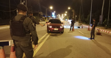 ร.ต.อ.นธี สุขแดง รอง สว(ป.)สภ.โคกเคียน พร้อมชป.พนาสนฑ์ ตั้งจุดตรวจจุดสกัดหน้าจุดตรวจ ห้วงเวลาตามแผนปิดเมืองนราธิวาส ทั้งช่วงเช้า และช่วงค่ำ